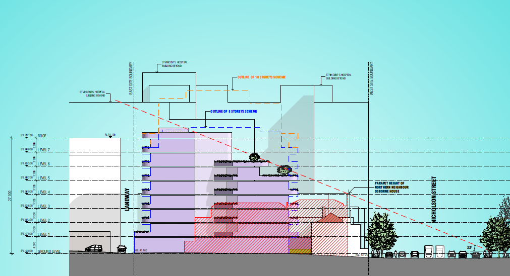 - The potential impact of the proposed apartment building on the highly intact heritage streetscape of Nicholson Street and within the wider South Fitzroy Historic Area;