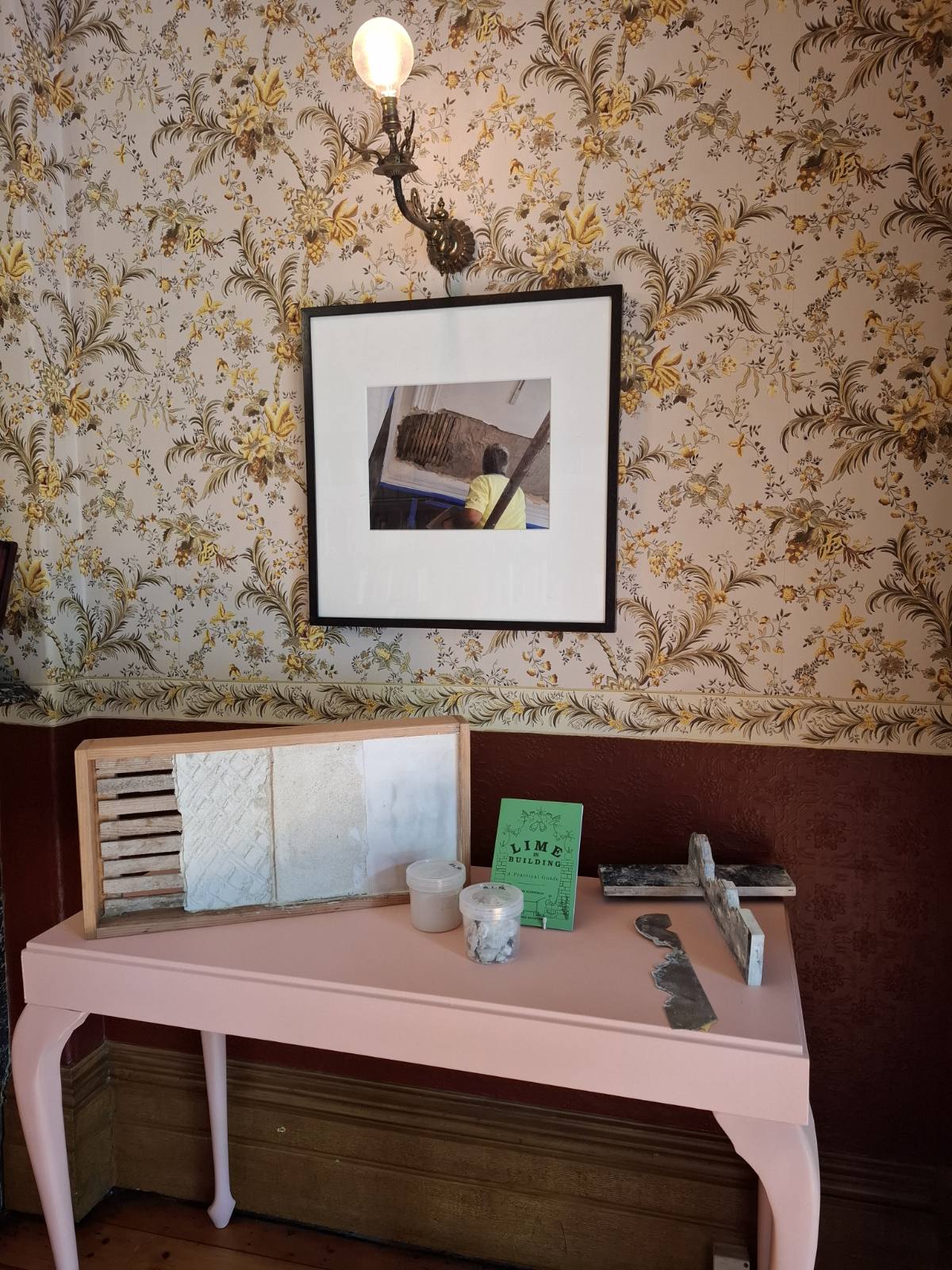 Looking around the retail and exhibition spaces, you can see the more recent plaster that has been used on the walls to make good the damage that was due to installation of electrical wiring into the building before it was acquired by the National Trust.